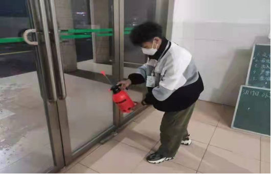 为积极响应我校疫情防控工作安排和学生公寓管理中心疫情防控部署,2022年3月24日,公寓团工委团学干部对各楼栋过道走廊洗衣室及团总支办公室等人员流动密集区域进行了全面消毒。