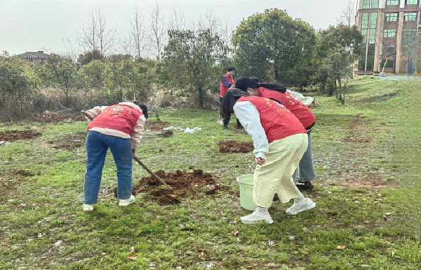 最是一年春光好,植树添绿正当时。为深入学习贯彻党的二十大精神和“绿水青山就是金山银山〞的生态理念,提升学生爱绿、护绿意识。让大家更好的了解植树节的来历、植树造林的意义及树木与人类生存的关系,培养爱护动物,热爱大自然的情感,增强环境保护意识,提高学生爱护花草,珍惜绿色的责任心。3月12日,我校团委组织青年志愿者协会和各学院志愿者服务队开展了以“青春护绿,你我同行”主题植树节活动。本次义务植树活动我校共种植树苗500余棵。
