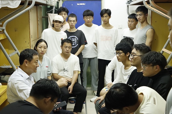 “你来自哪里?”“在校生活还适应吗?”“校园给你的第一印象如何?”“对未来的学习生活有怎样的期待?”“住宿环境适应吗?”“学校食堂饭菜是否可口?”走进宿舍,胡涌书记亲切地向大家询问学习和生活情况,并向他们致以亲切的关心和问候。“谢谢胡书记的关心!一下站,来到美丽的新余,我们很兴奋,不但这座城市很美,而且有很多学校青年志愿者伸出友谊之手,迎接我们入学,我们感到非常温馨和幸福。说实话,刚来到学校这个新环境,开始有点不适应,但是在学校领导老师和同学们的帮助下,我们现在开始适应了,学校的饭菜也很可口,接下来,我们会好好学习,尽早适应学校环境,拟定好自己的学习目标,请书记放心。”宿舍里,学生们争先恐后地畅谈自己地心得。在交谈过程中,胡涌书记与每一名新生亲切交流,向同学们表达了热烈欢迎和亲切关怀,详细了解了同学们的专业、生源地等情况,仔细询问同学们在进校后遇到的问题,尤其是住宿条件和食堂饮食的适应情况,多次叮嘱老师要细致耐心解决同学们的问题。