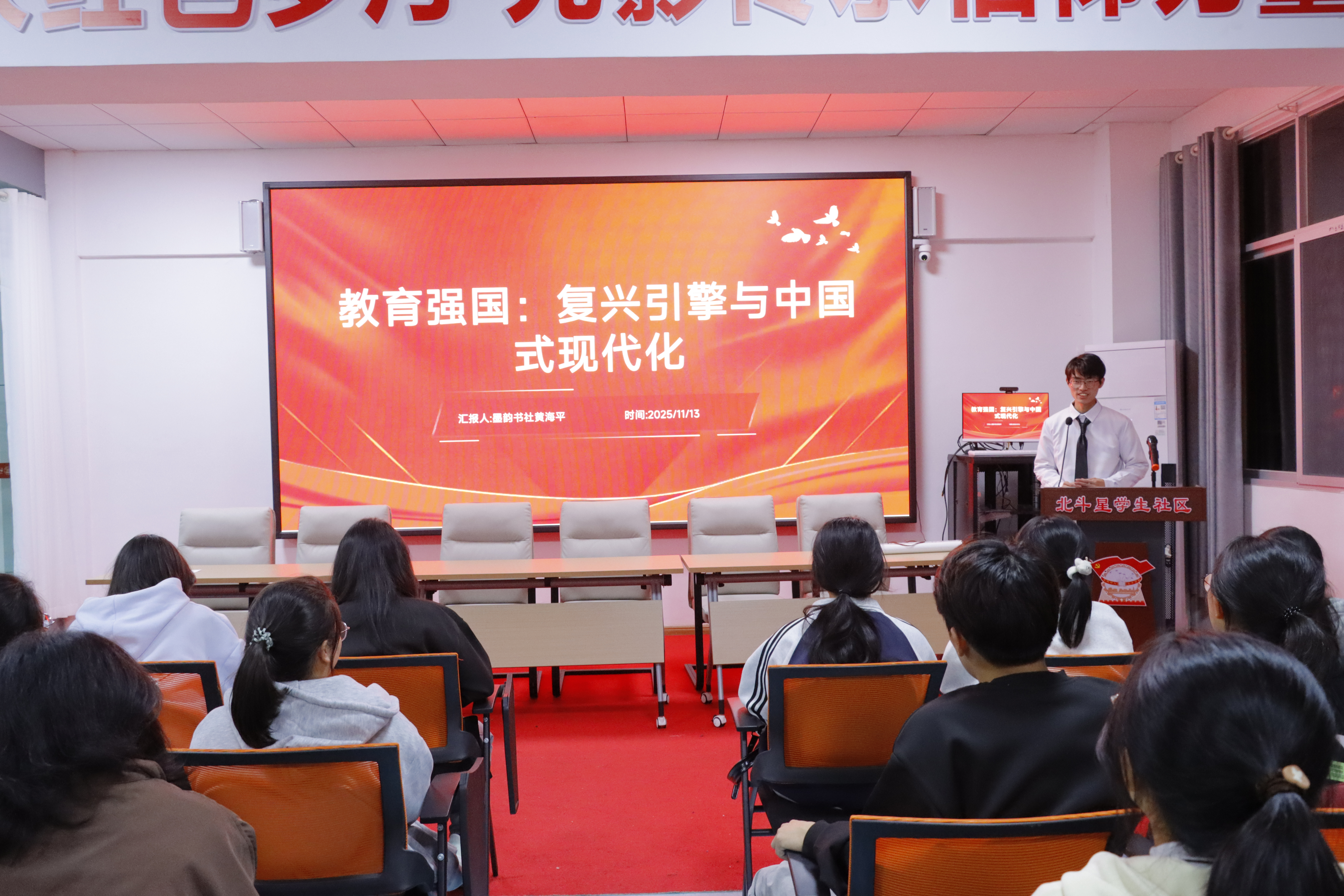 以“接地气”赋能,让理论宣讲有“土味”更见“实效”。学校“十百千”宣讲团成员、墨韵书社社长黄海平在宣讲中表示,学生社团将深入学习贯彻党的二十届四中全会精神,以实际行动弘扬和践行社会主义核心价值观,深耕校园文化建设,提升“文化兴校”传播力与影响力,为学校文化建设贡献青春力量。