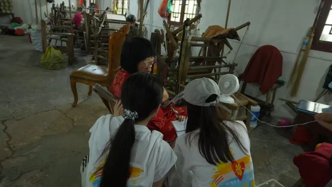 在参观过程中,实践队队员们与匠人们进行了交流,了解他们在工作和生活中使用普通话的情况。交流中得知,许多匠人虽习惯以方言沟通,但为了更好地传承技艺、与外界交流,摆脱非遗传承难等问题,都在努力学习普通话。队员们也与之分享推广普通话对非遗文化传播的重要意义,用生动的案例说明规范语言能够让夏布技艺走出新余昌坊,走向全国,被更多人知晓。