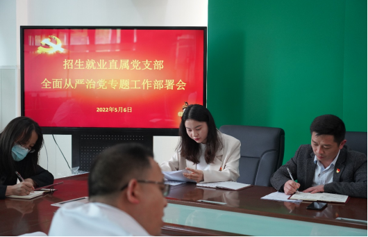 为进一步规范学校管理,巩固提升全面从严治党整改效果,推动全面从严治党工作向纵深发展,我校星空体育官网网页直属党支部于5月6日下午在星空体育官网网页服务大厅召开全面从严治党专题工作会议。校党委委员、董事长助理、校长助理乐俊杰到会指导。星空体育官网网页直属党支部书记、招生处处长谢浓,星空体育官网网页直属党支部纪检兼统战委员、就业处处长王长旺,星空体育官网网页直属党支部副书记卫晓东,星空体育官网网页直属党支部宣传委员、招生处副处长刘磊,星空体育官网网页直属党支部组织委员孙雯娟及星空体育官网网页直属党支部全体党员参加会议。会议由谢浓主持。
