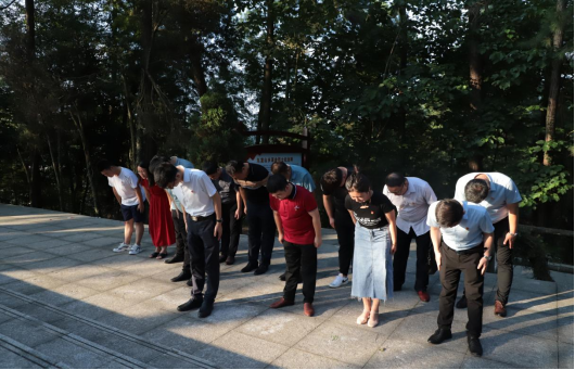 接着,党委委员、董事长助理、校长助理乐俊杰带领同志们前往九龙山革命斗争陈列馆参观学习。