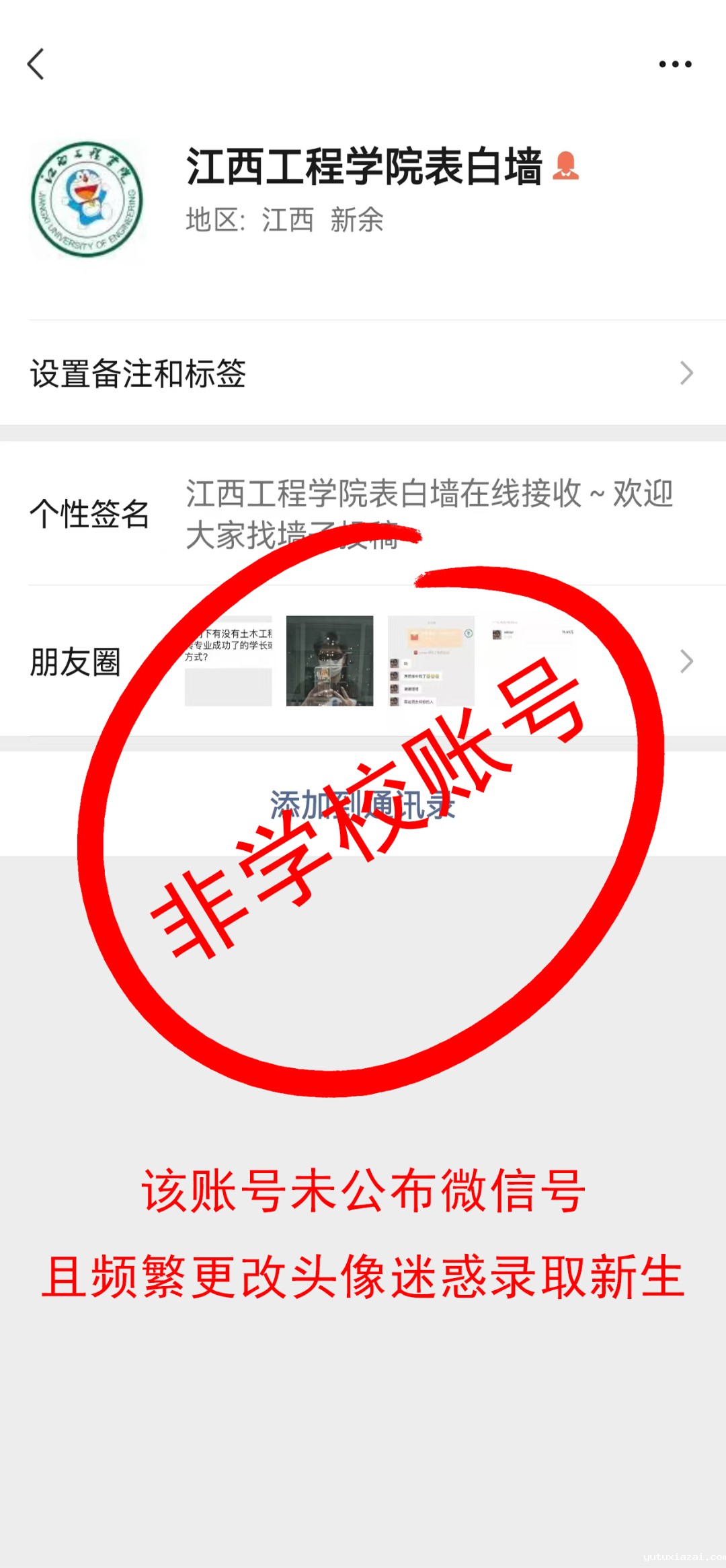 工作人员浏览多个高校微信公众号发现,江西科技学院、南昌应用技术师范学院、 江西软件职业技术大学、长春工业大学、湖北大学等高校官方微信公众号均发布了声明,提醒录取新生请勿随意添加网络不明群聊,谨防网络诈骗。